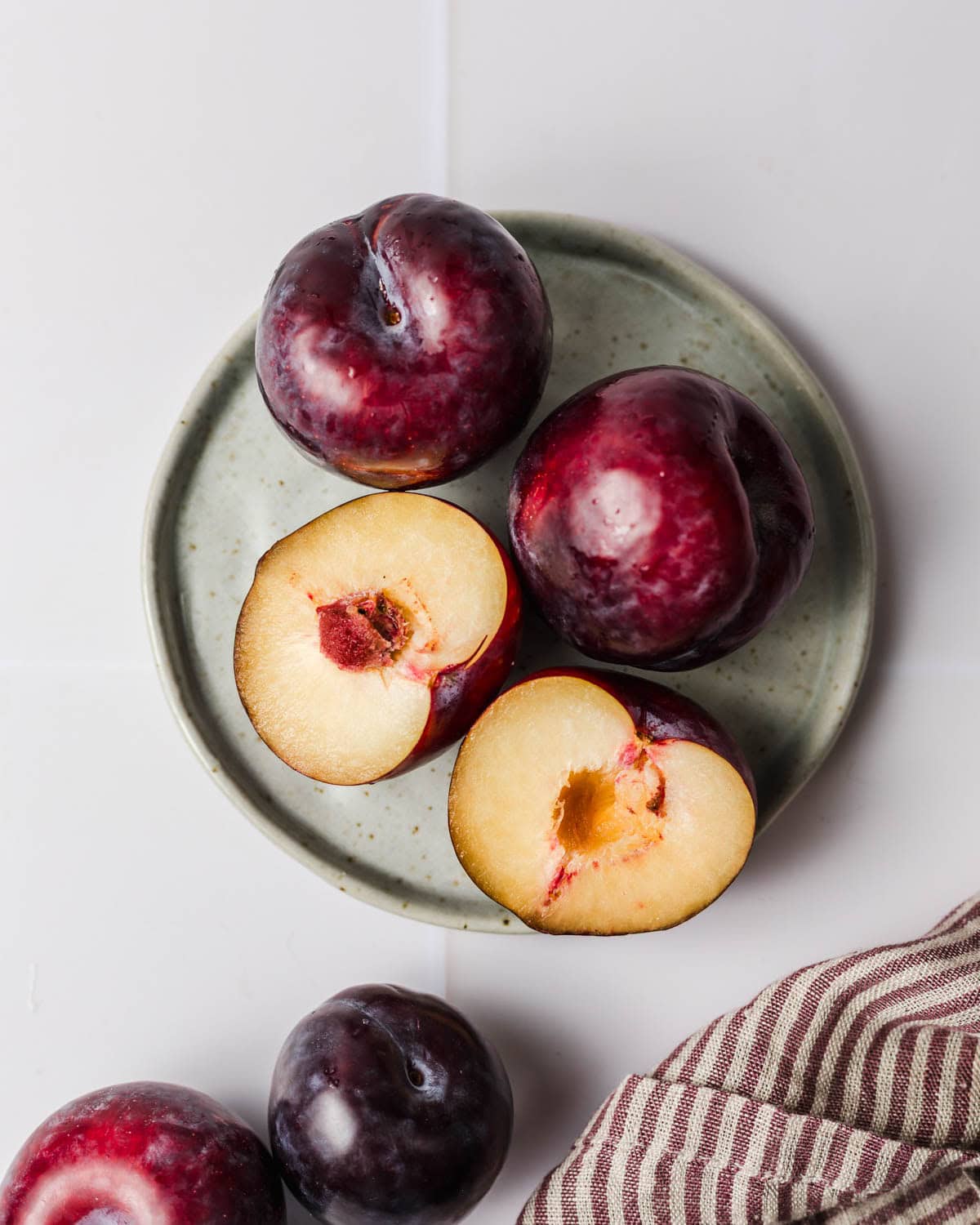 - Pflaumen – frisch, reif und saftig für das beste Aroma. Nutze violette oder gelbe Pflaumen.